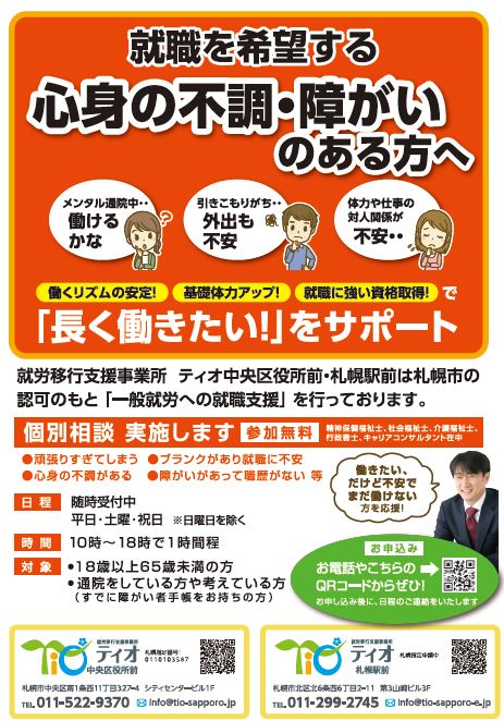 【札幌の就労移行支援事業所 ティオ中央区役所前の特徴】
