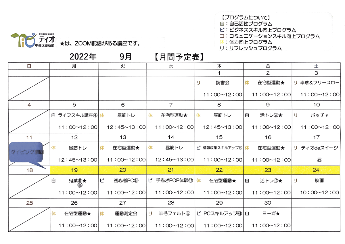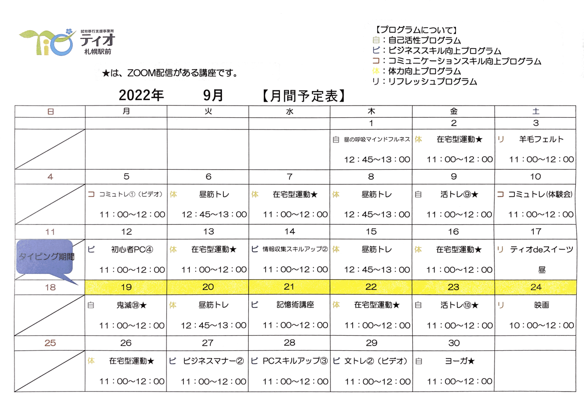 ティオ中央区役所前・札幌駅前の9月の予定が決まりましたのでお知らせいたします!