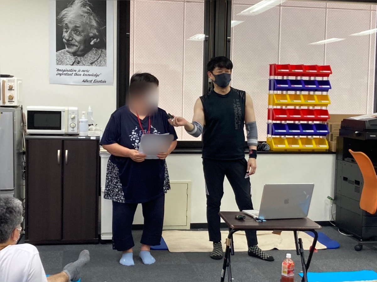 利用者さんが1分間でスピーチを行っていただく【朝礼発表】です。