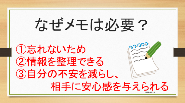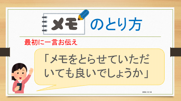 仕事をしたときのメモの取り方について学んでいきましたよ。