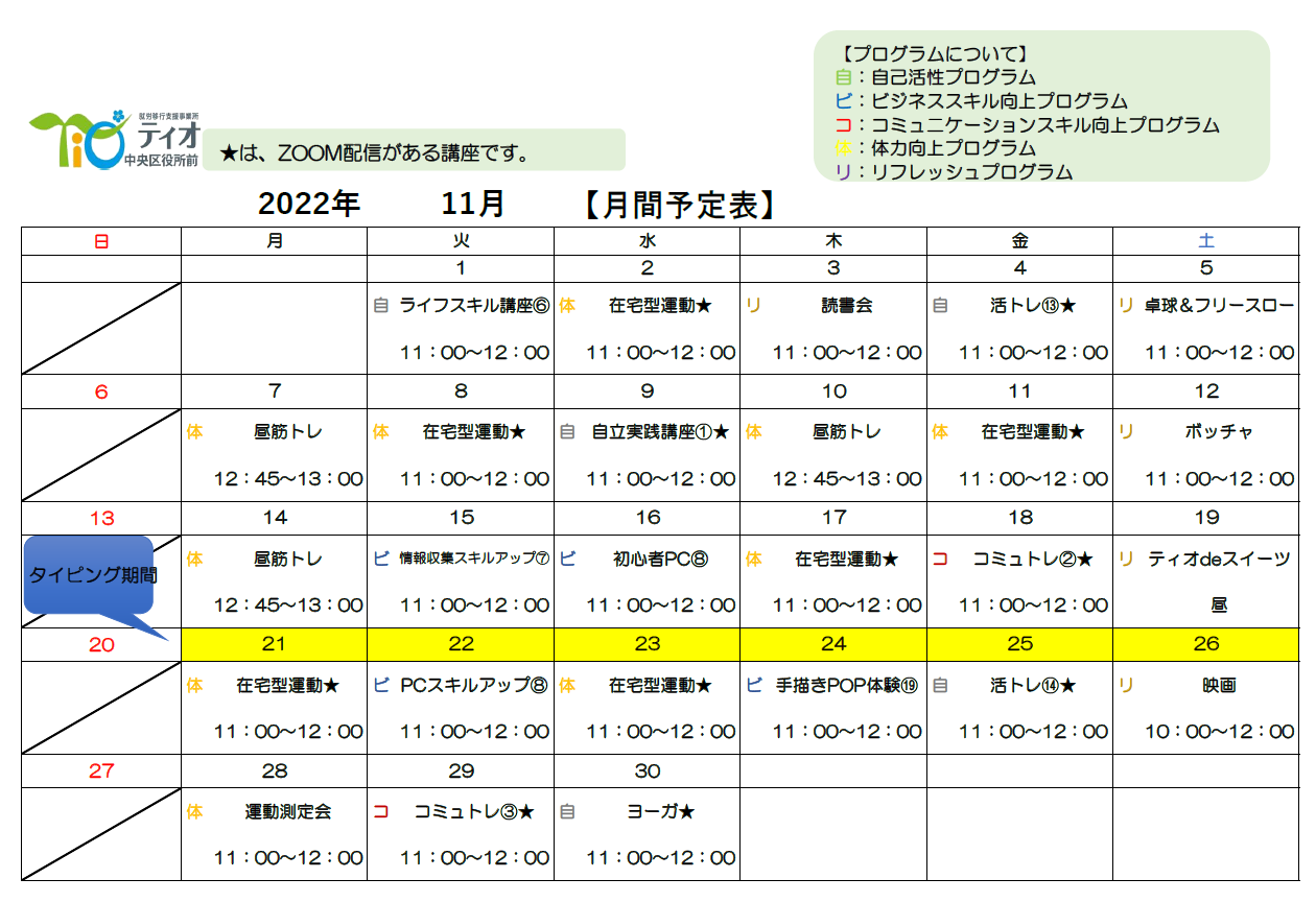 11月9日は、新しいプログラム 自立実践講座が登場です!