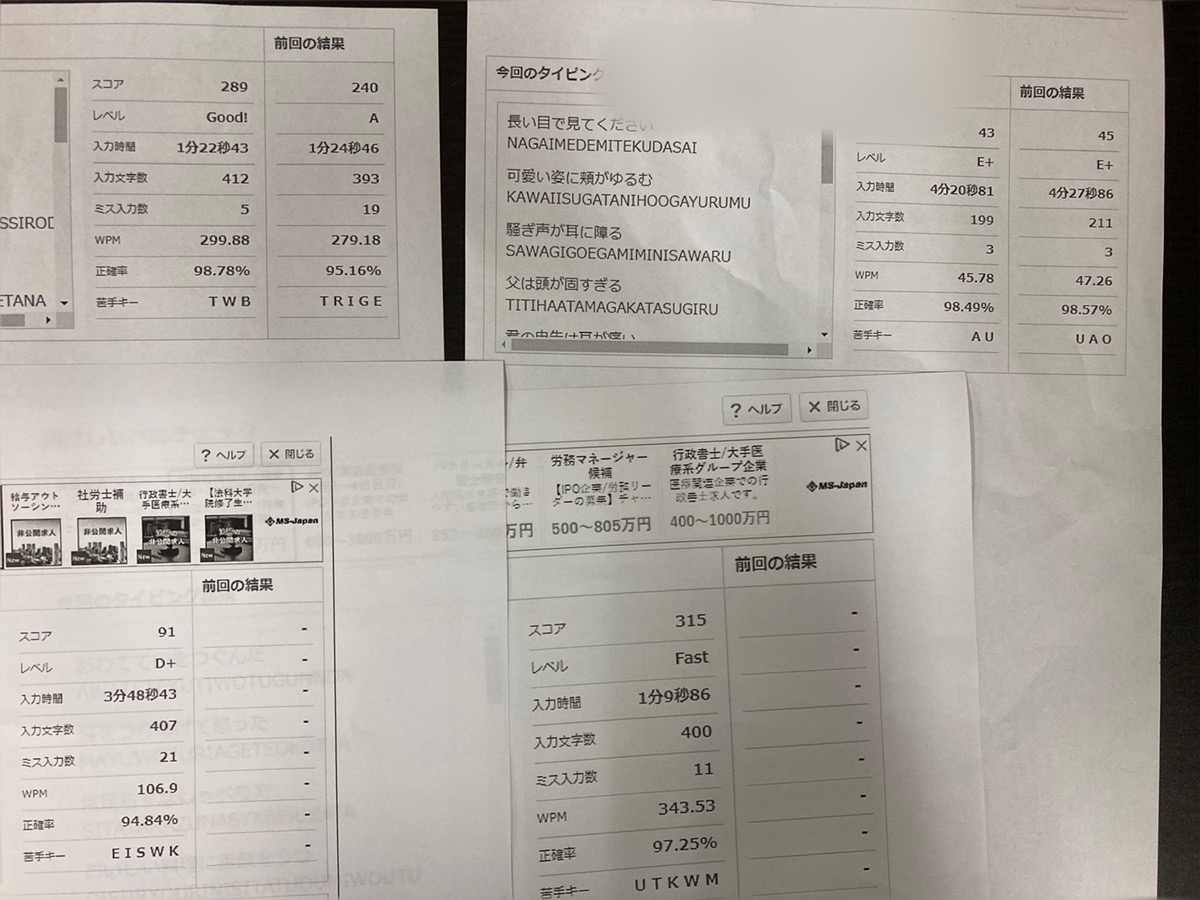 タイピングの測定を行い、提出する取り組みを行っています。