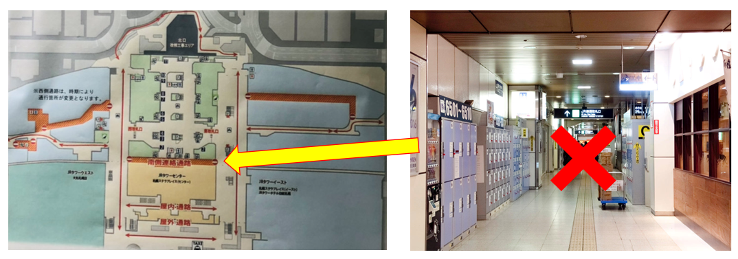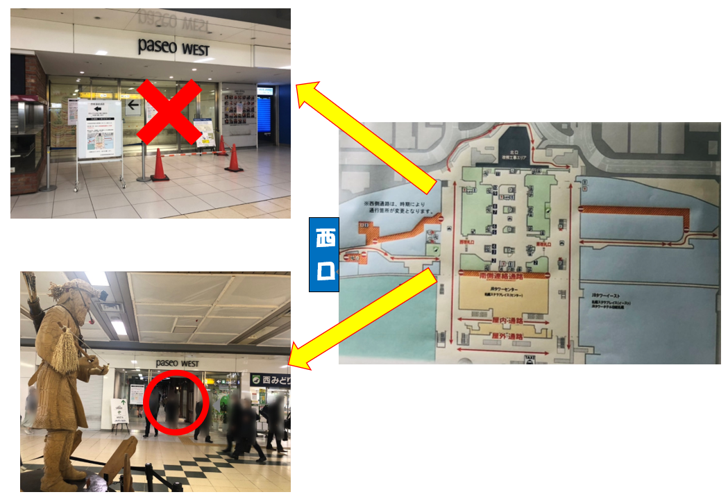 札幌駅西口に向かう1階通路について、前回と通ることができる通路が逆になりました!
