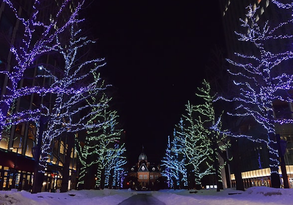札幌駅南口、赤レンガテラス前、駅前通などでイルミネーションが綺麗に点灯していますよ。