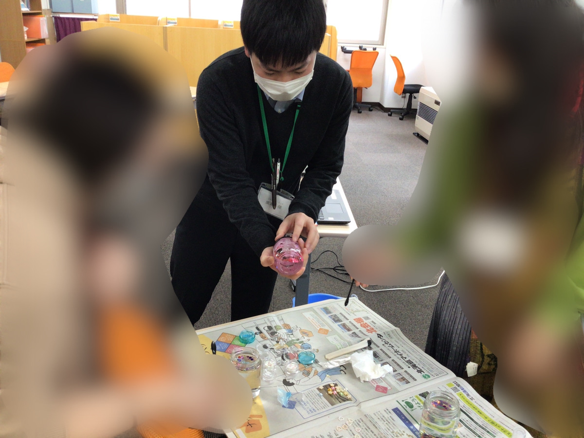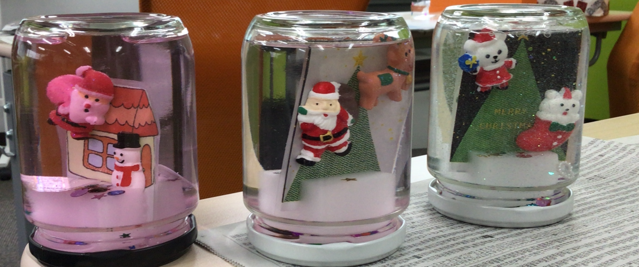 こちらの写真が実際に利用者さんが作った手づくりスノードームになります。