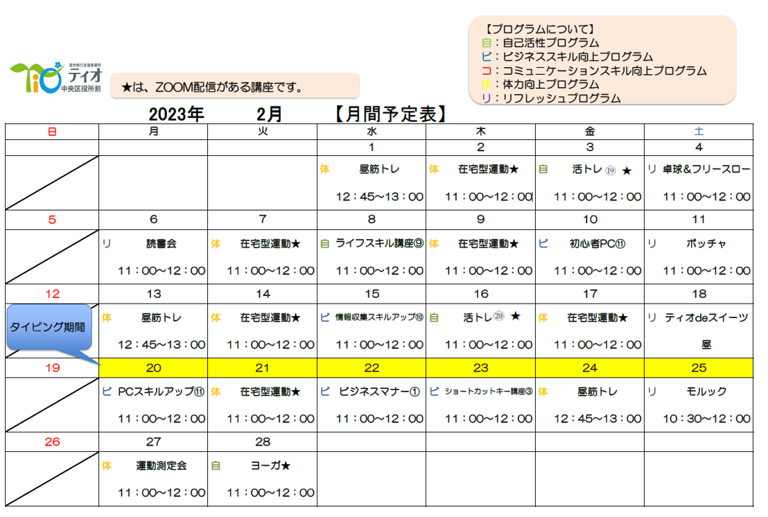 2月の予定表はこちらです ↓↓