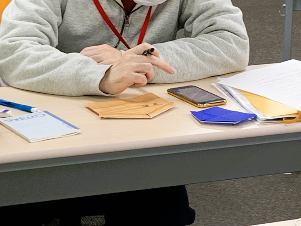 在宅の方も参加され、みなさんで折り方を確認しながら取り組みます。