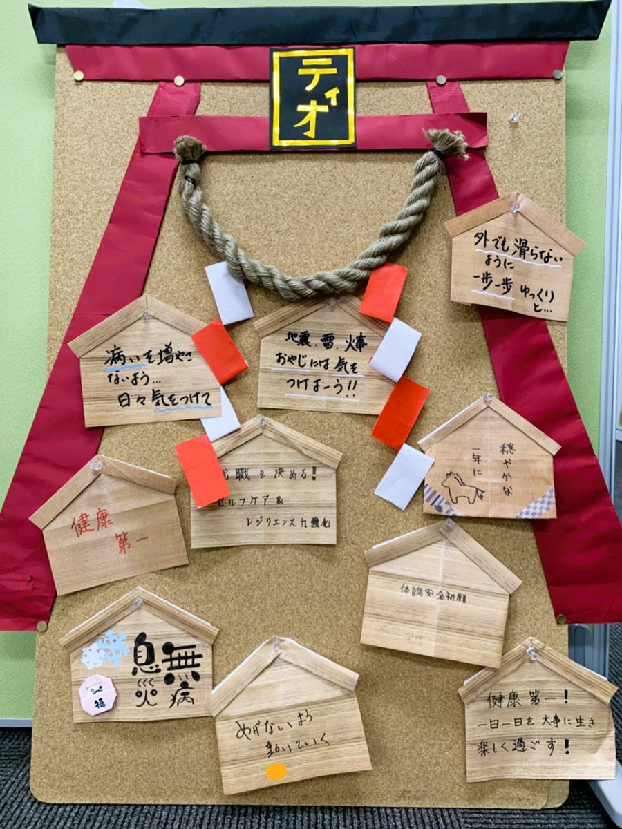 こうしてみなさんティオ神社に奉納され、1月は事業所内に掲示しております。