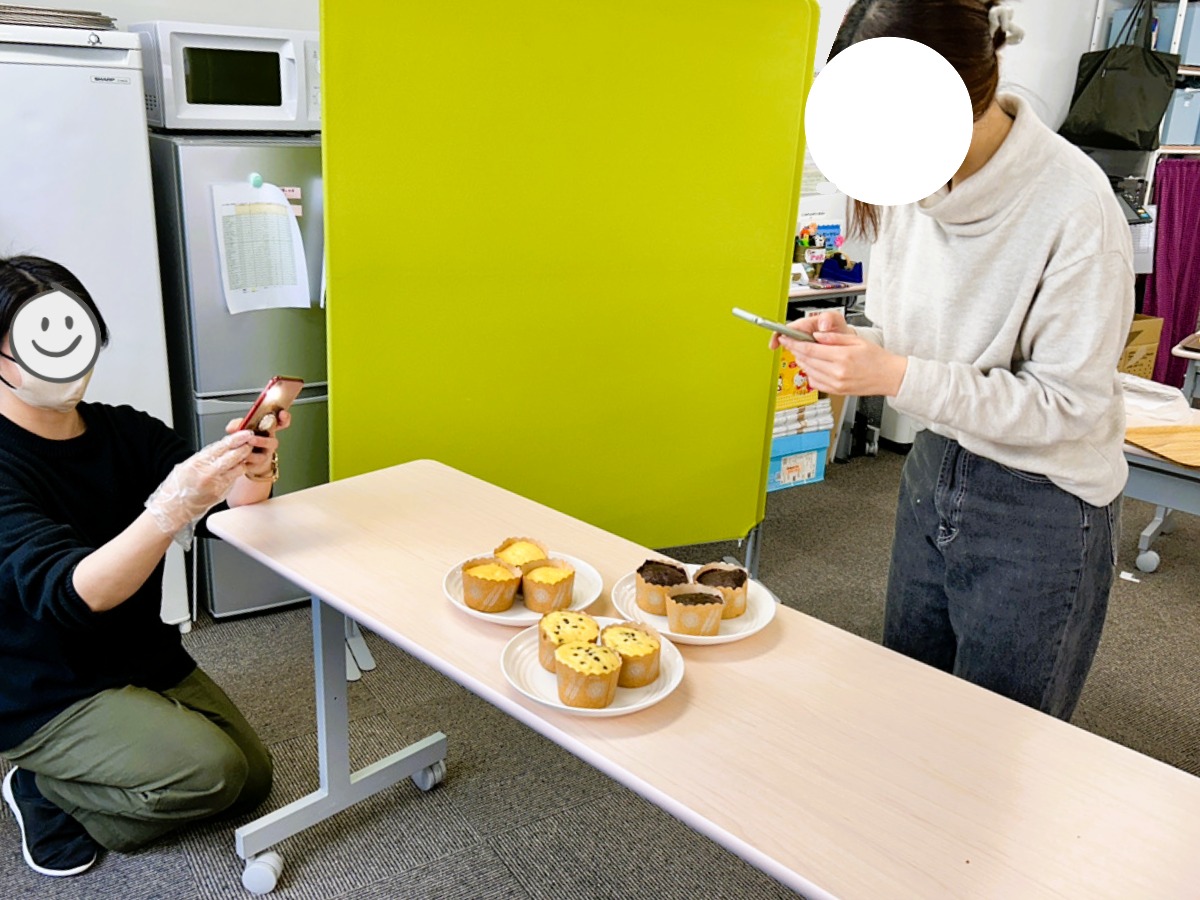 粗熱をとる間に、みなさんでお菓子撮影!