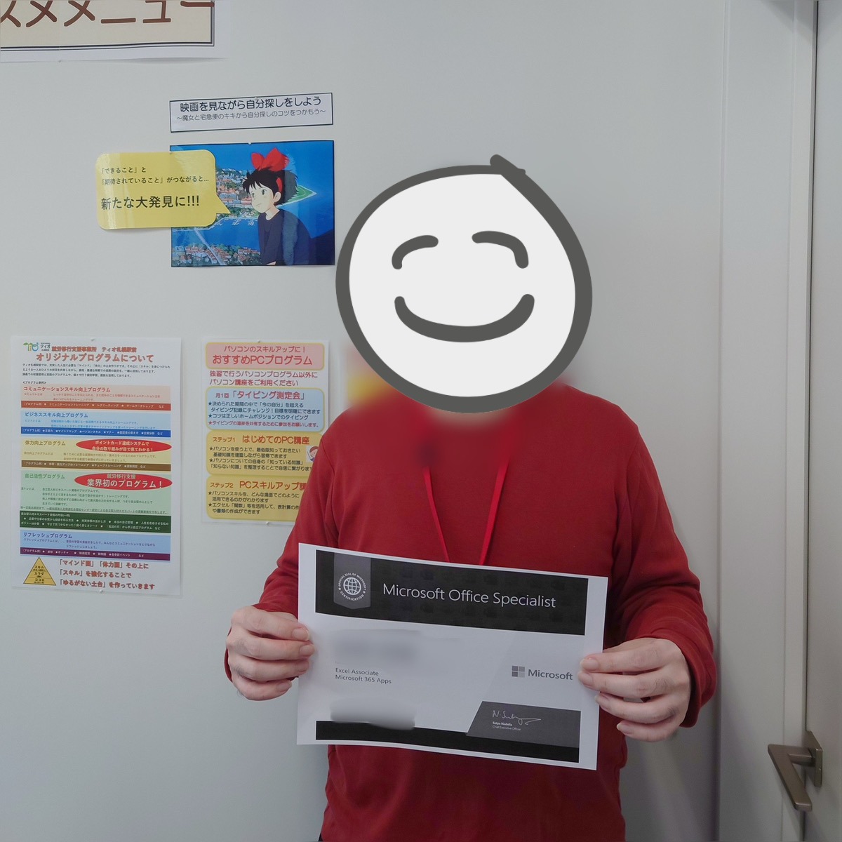 パソコンの資格である【MOS Excel】を取得された利用者さんへ、