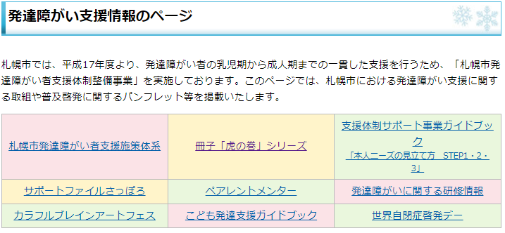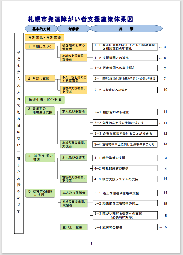例えば、札幌市発達障がい者支援施策体系を開くと、